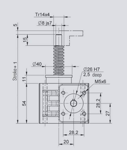 TP絲桿升降機驅動軸旋轉帶動蝸輪并產生螺桿的軸向直線運動,螺桿必須有抗旋轉功能;TPR配備旋轉歸納法桿與支撐螺母,驅動軸旋轉帶動蝸輪旋轉。蝸輪與螺桿連接,因而也帶動螺桿旋轉。支撐螺每間把螺桿的旋轉運動轉變成直線運動,支撐螺母必須具有抗旋轉功能。
