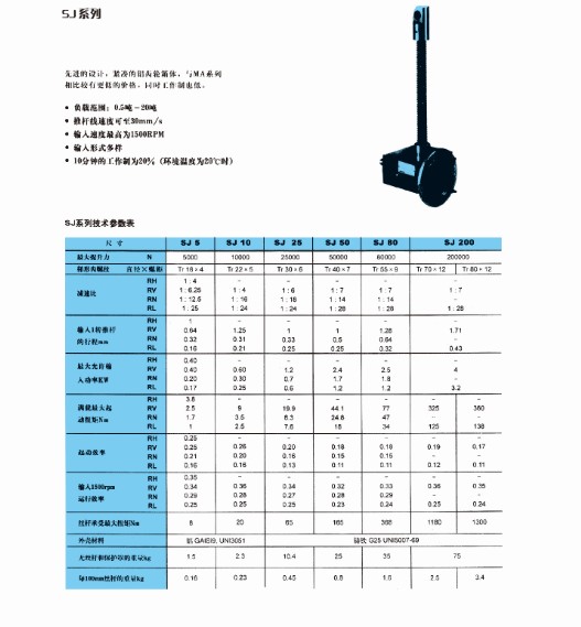 按提升力分為: 2.5 、 5 、 15 、 20 、 35 、 50 × 10KN 八種
