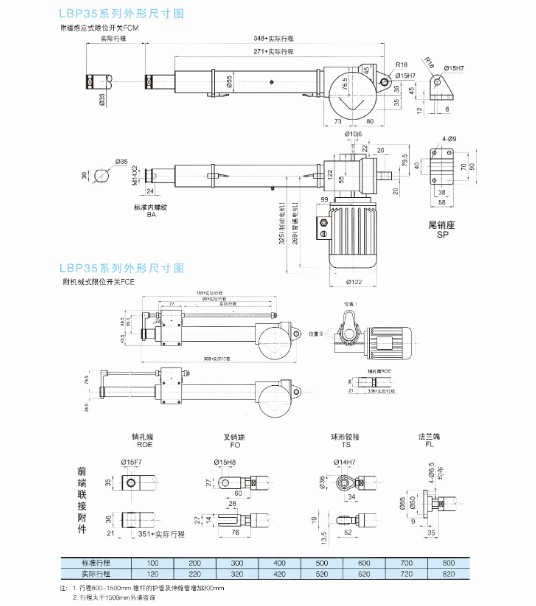 電動推桿是一種新型的電動執(zhí)行機構,電動推桿主要由電機、推桿和控制裝置等機構組成的一種新型直線執(zhí)行機構,可以實現(xiàn)遠距離控制、集中控制。電動推桿在一定范圍行程內(nèi)作往返運動,一般電動推桿標準行程在,100,150,200,250,300,350,400mm,特殊行程也可根據(jù)不同應用條件要求設計定做。電動推桿可以根據(jù)不同的應用負荷而設計不同推力的電動推桿,一般其最大推力可達6000N,空載運行速度為4mm~35mm/s,電動推桿以24V/12V 直流永磁電機為動力源,把電機的旋轉運動轉化為直線往復運動。推動一組連桿機構來完成風門、閥門、閘門、擋板等切換工作。采用電動推桿作為執(zhí)行機構不僅可減少采用氣動執(zhí)行機構所需的氣源裝置和輔助設備,也可減少執(zhí)行機構的重量。氣動執(zhí)行機構在整個控制運行過程中都需要有一定的氣壓,雖然可采用消耗量小的放大器等,但日積月累,耗氣量仍是巨大的。采用電動推桿執(zhí)行機構,在改變控制開度時,需要供電,在達到所需開度時就可不再供電,因此從節(jié)能看,電動推桿執(zhí)行機構比氣動執(zhí)行機構有明顯節(jié)能優(yōu)點。適用于遠距離操縱而廣泛用于電力、化工、冶金、礦山、輕工、交通、船舶等部門的風門、閥門、閘門等機構的啟閉、物料裝卸、流量控制等。現(xiàn)已被越來越多的部門用它來代替機構手、液壓閥、減速傳動機構的自動裝置。